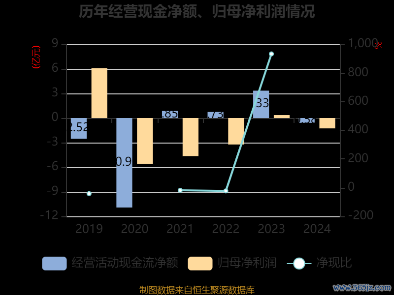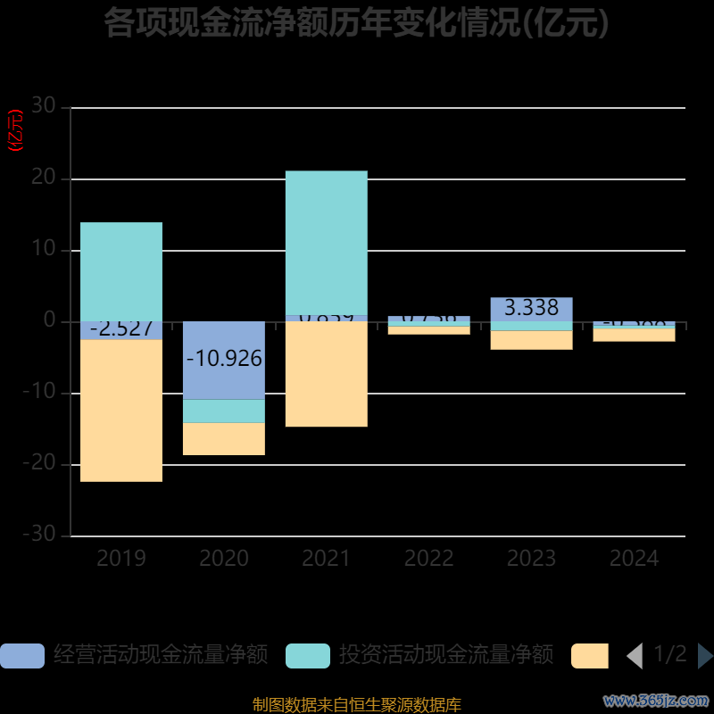 截至2024年,公司经营活动现金流净额为-5878.2万元,同比减少3.93亿元;筹资活动现金流净额-1.81亿元,同比增加8421.7万元;投资活动现金流净额-4275.7万元,上年同期为-1.32亿元。