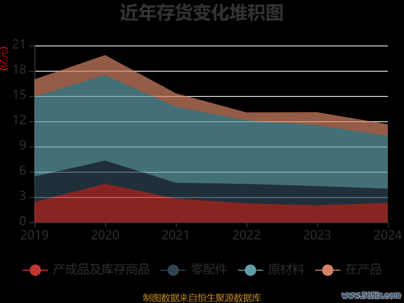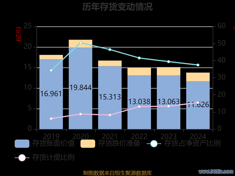 从存货变动来看,截至2024年末,公司存货账面价值为11.63亿元,占净资产的37.45%,较上年末减少1.44亿元。其中,存货跌价准备为2.13亿元,计提比例为15.47%。